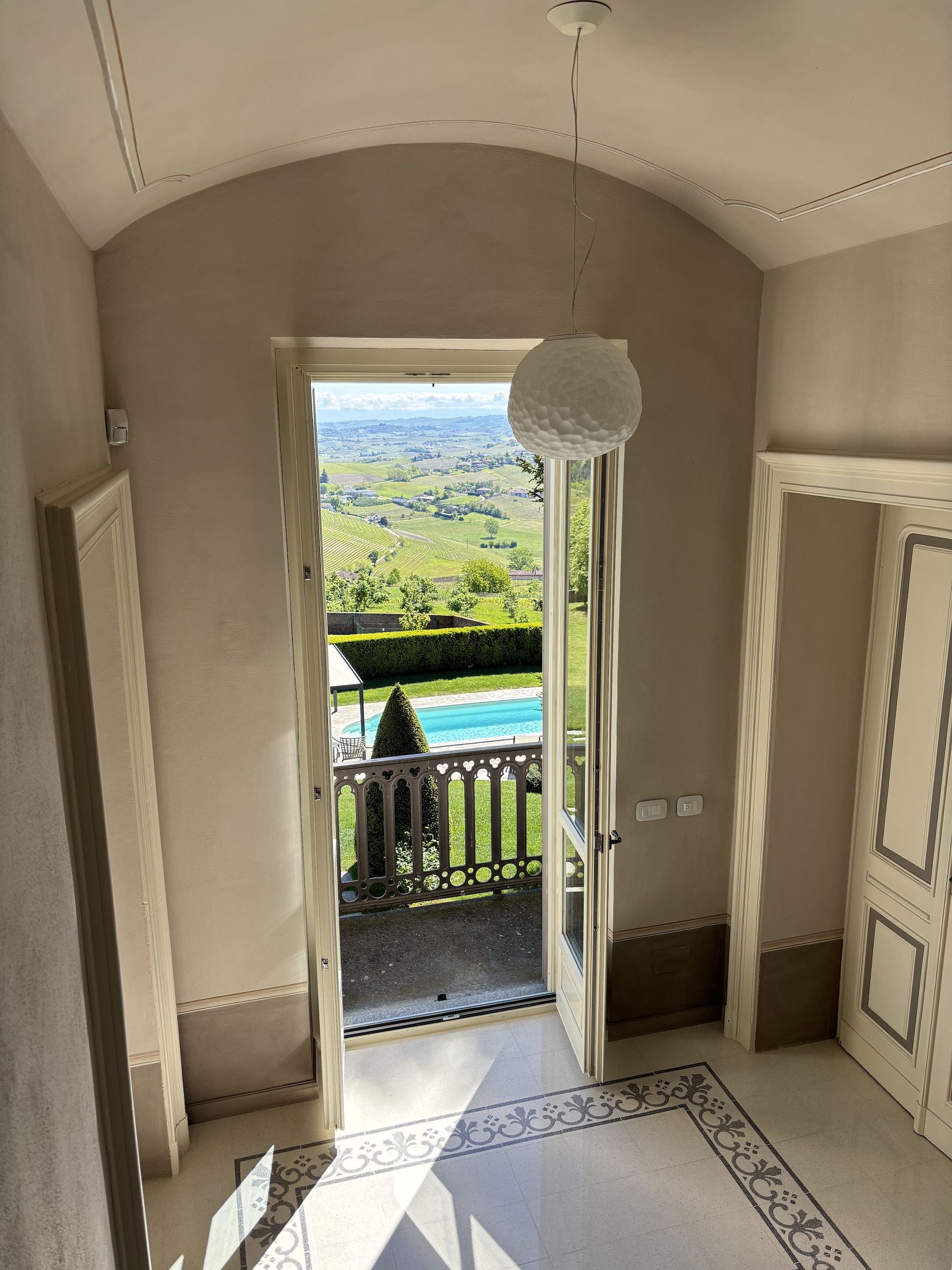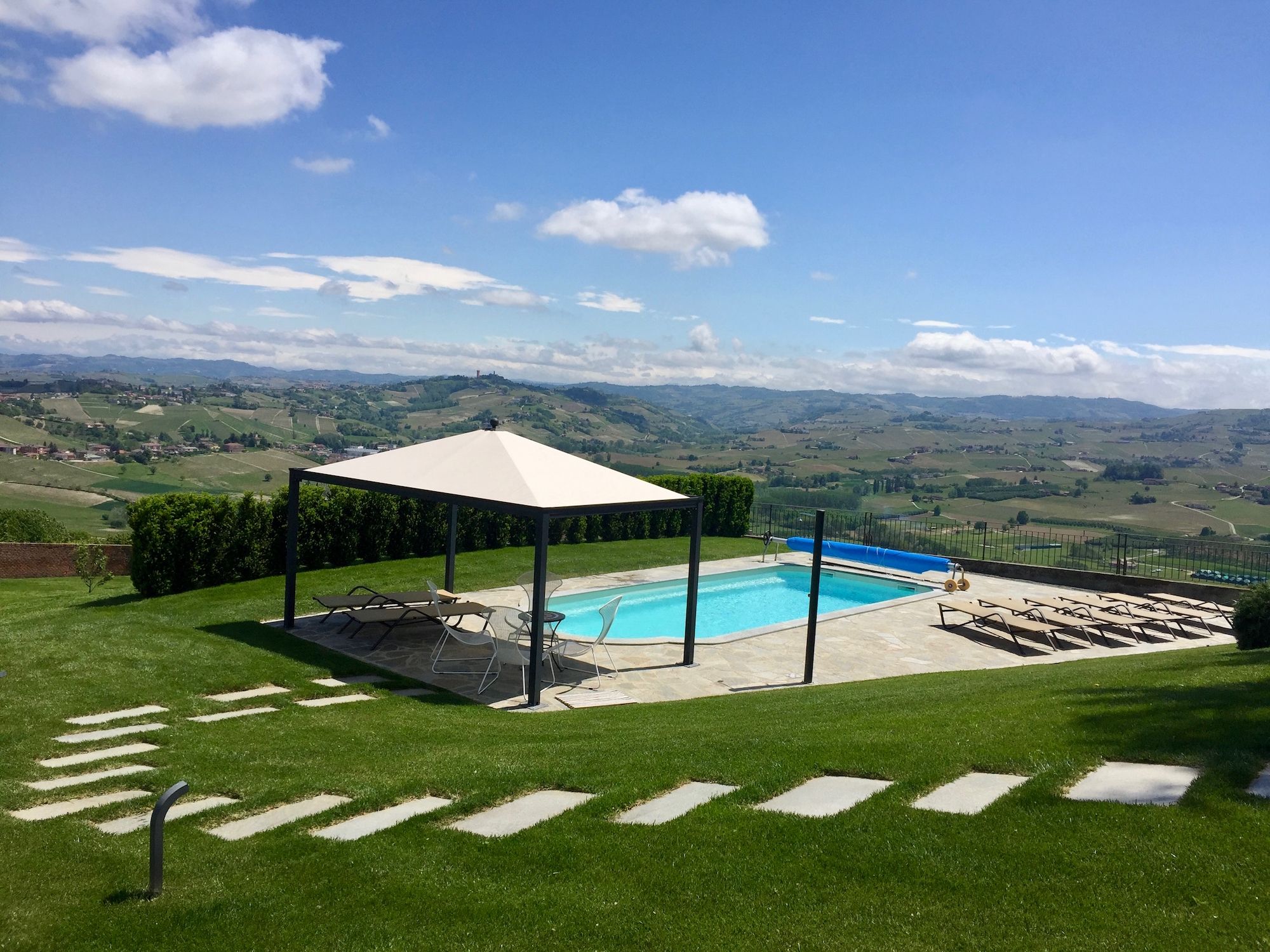 From the Country House Cascina Vigne (on the right) you are enjoying a breathtaking view of the surrounding rolling hills. Shared pool with Cascina Castello. Pool with salt-electrolysis cleaning system. Enclosed garden. Pets not allowed.