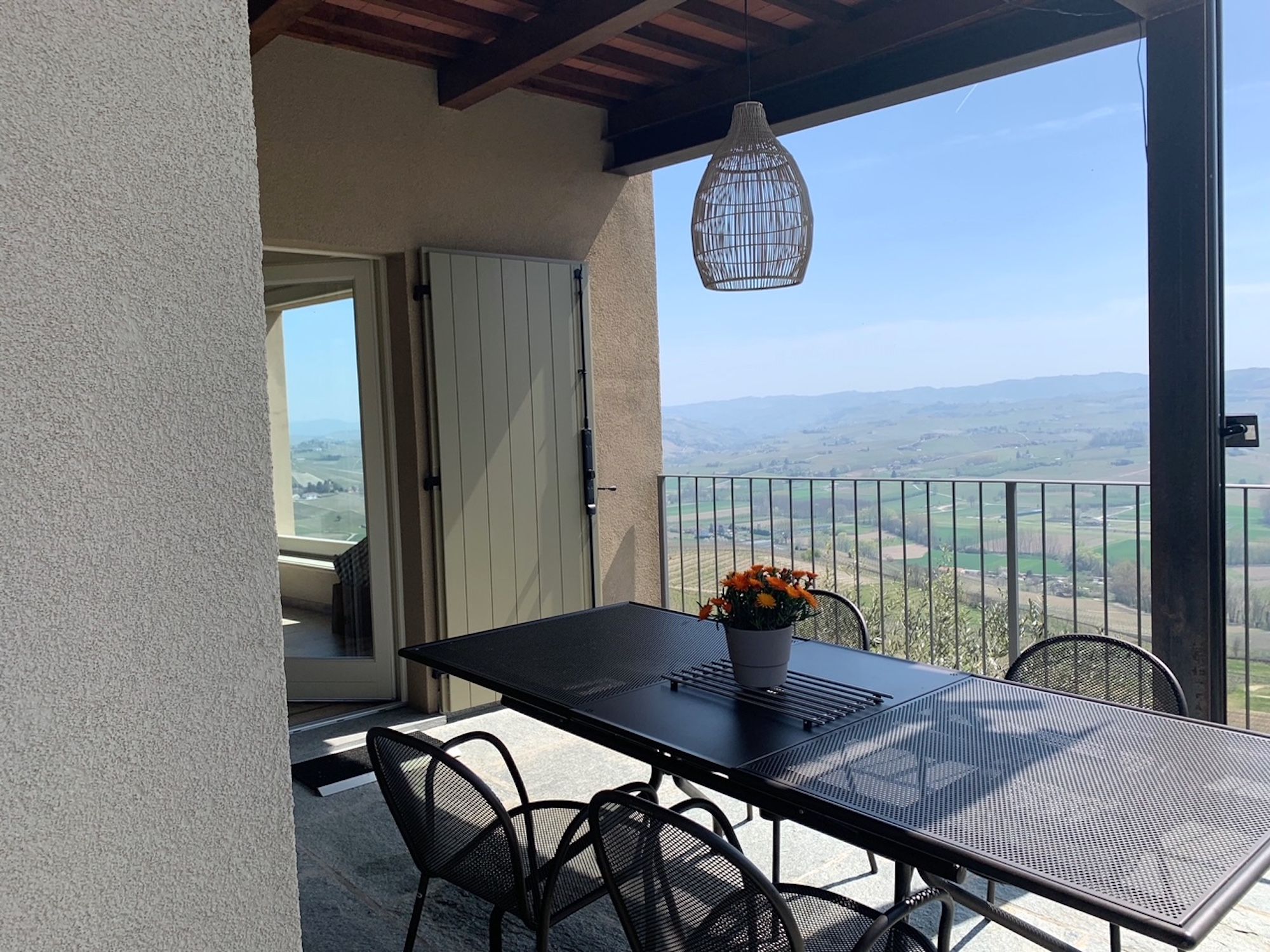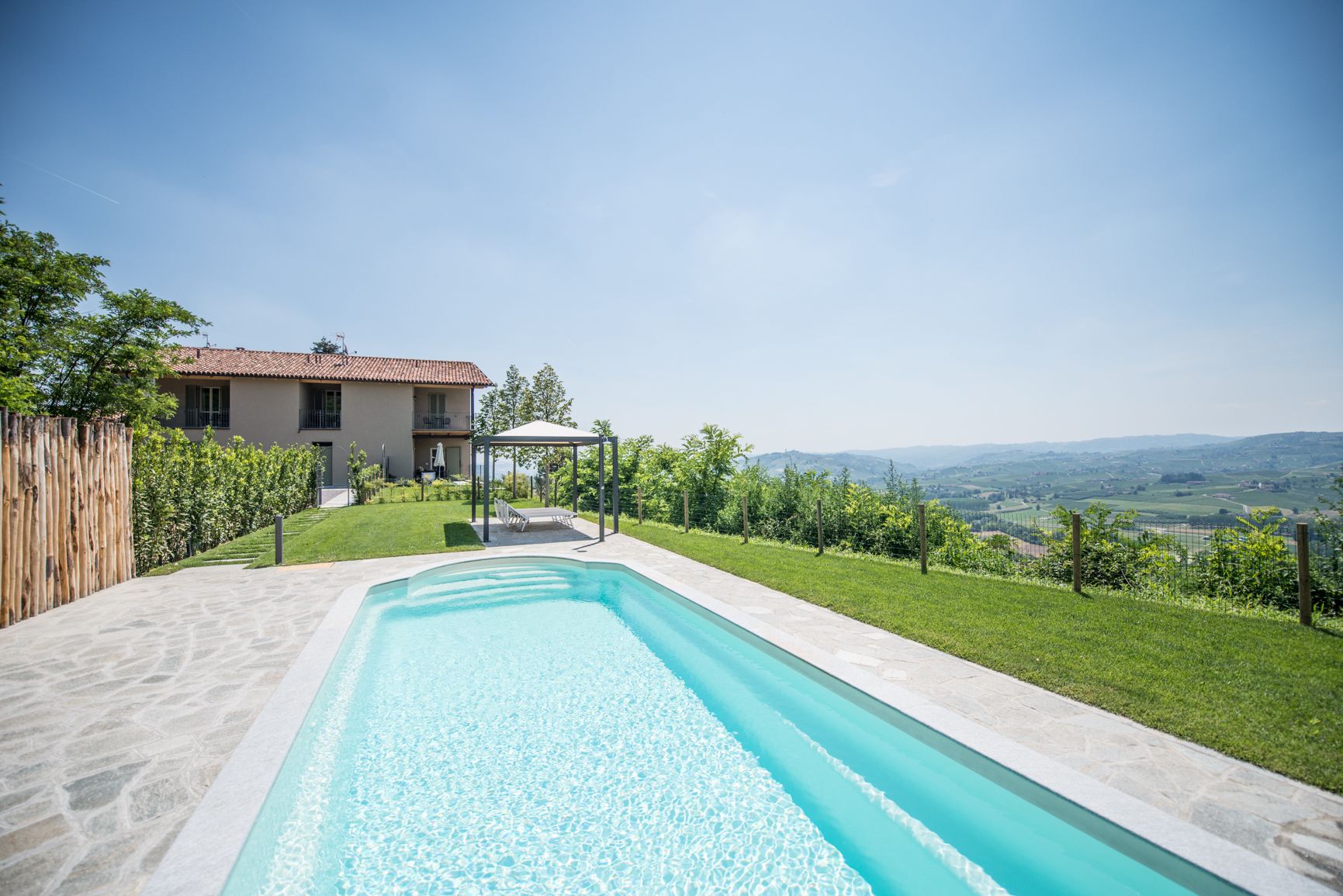 Vom Ferienhaus Cascina Vigne (rechter Hausteil) haben Sie einen atemberaubenden Blick auf die umliegende Hügellandschaft. Gemeinsamer Pool mit Cascina Castello. Pool mit Salzelektrolyse-Reinigungssystem. Garten eingezäunt. Haustiere nicht erlaubt.